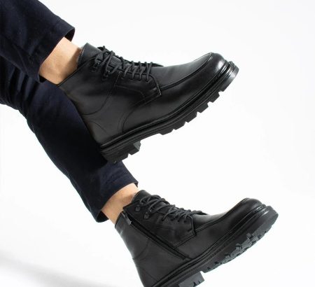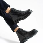 indirim!SHOEMAKER El Yapımı Kürklü Siyah Klasik Erkek Çizme Bot